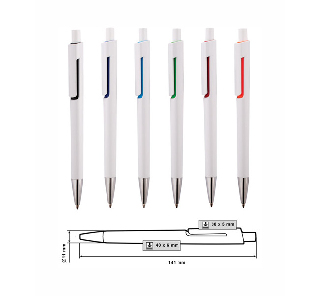 Размер на артикула: Ø11х141 mm. Печатаемо поле: 40х6 mm. Печатаемо поле клипс: 30х5 mm. Печат: тампонен, ситопечат.