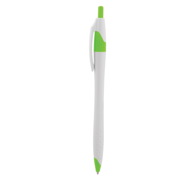 Plastic ballpoint pen, slim plastic refill, blue ink.