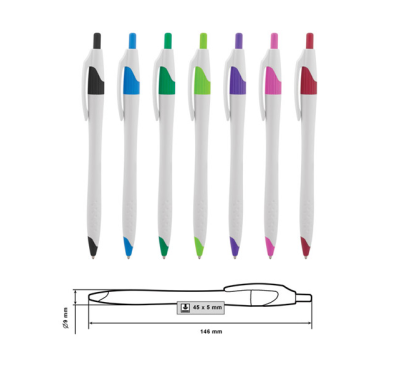 Plastic ballpoint pen, slim plastic refill, blue ink.