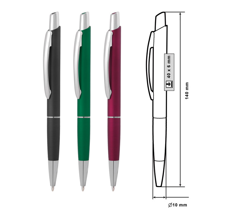 Размер на артикула: Ø10х140 mm. Печатаемо поле: 40х6 mm. Печат: тампонен, ситопечат.