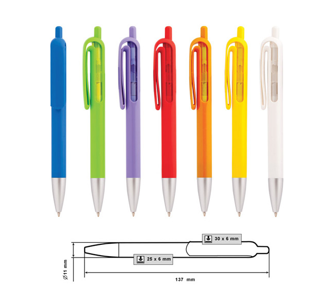Размер на артикула: Ø11х137 mm. Печатаемо поле: 25х6 mm. Печатаемо поле клипс: 30х6 mm. Печат: тампонен.