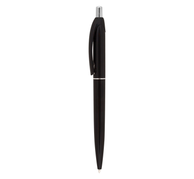Plastic ballpoint pen, slim plastic refill, blue ink.