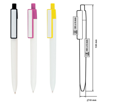 Размер на артикула: Ø10х138 mm. Печатаемо поле: 50х6 mm. Печатаемо поле клипс: 30х4 mm. Печат: тампонен, ситопечат.
