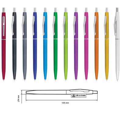 Plastic ballpoint pen, slim plastic refill, blue ink.