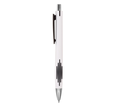 Plastic ballpoint pen, slim plastic refill, blue ink.