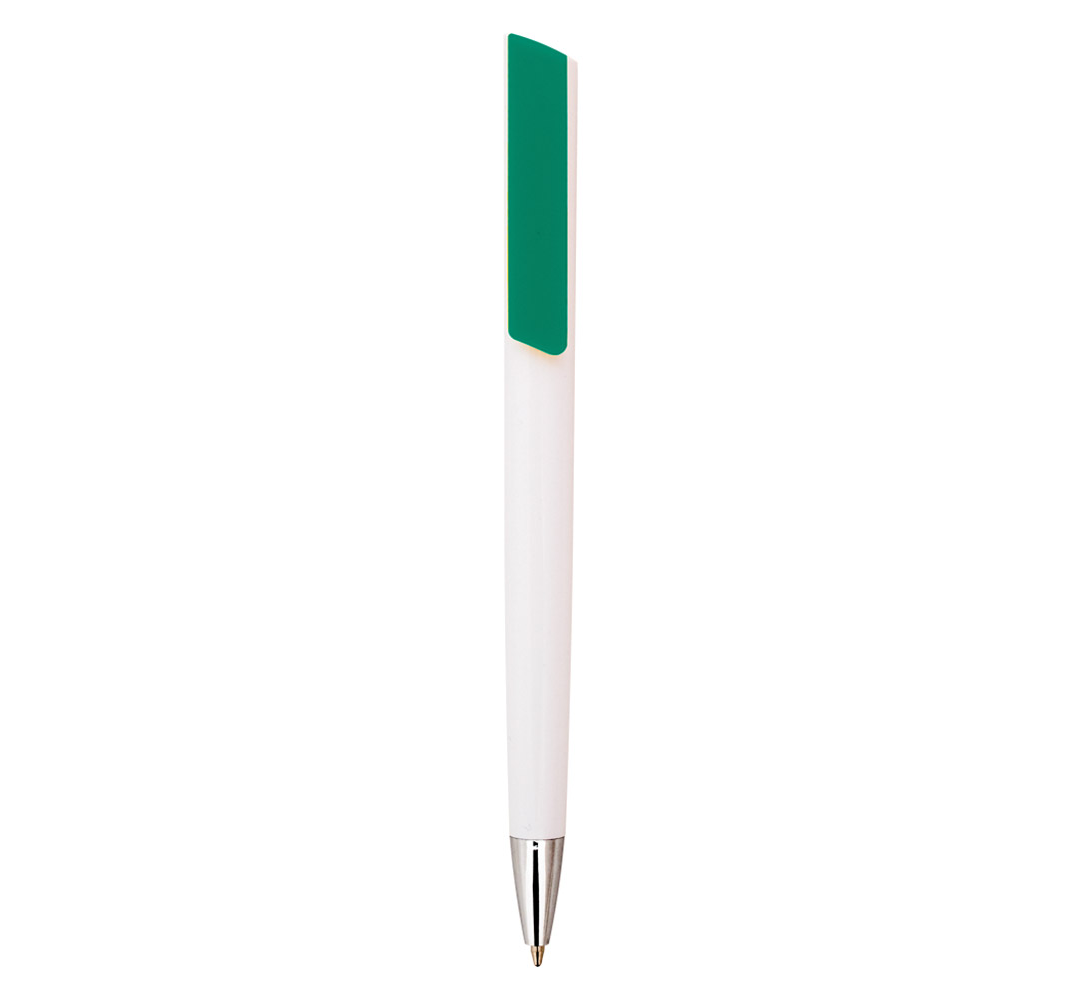 Plastic ballpoint pen, slim plastic refill, blue ink.