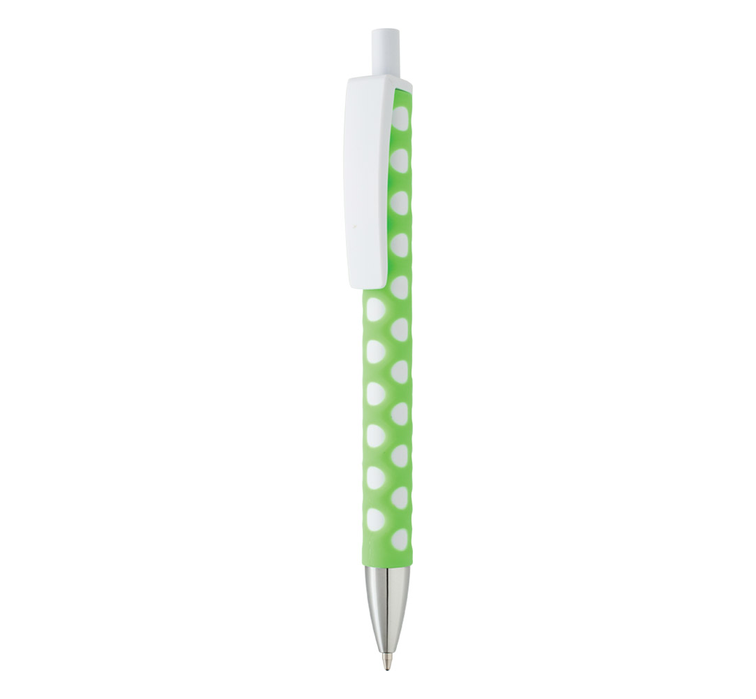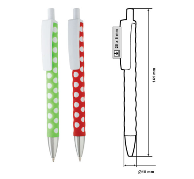Plastic ballpoint pen, slim plastic refill, blue ink.