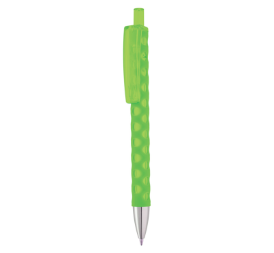 Plastic ballpoint pen, slim plastic refill, blue ink.