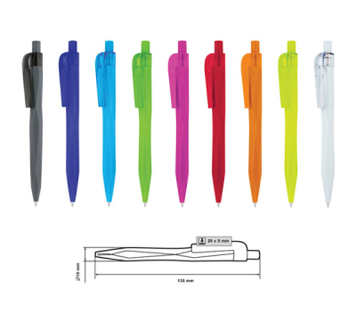 Plastic ballpoint pen, slim plastic refill, blue ink.