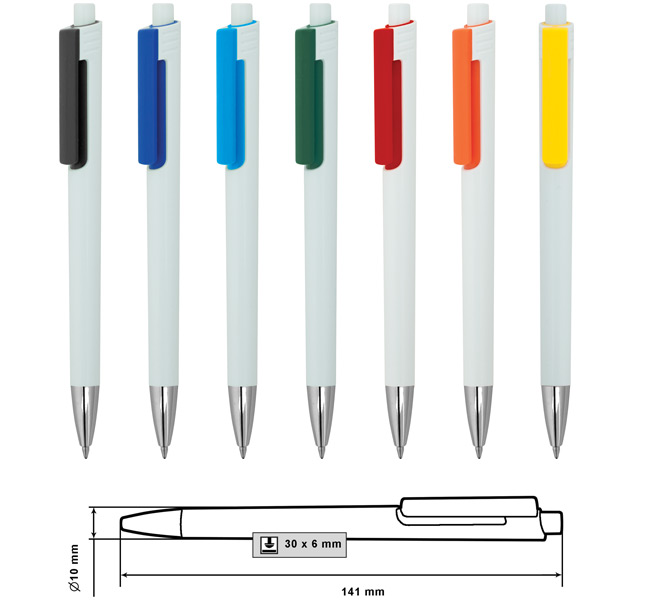 Plastic ballpoint pen, slim plastic refill, blue ink.