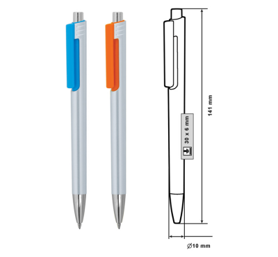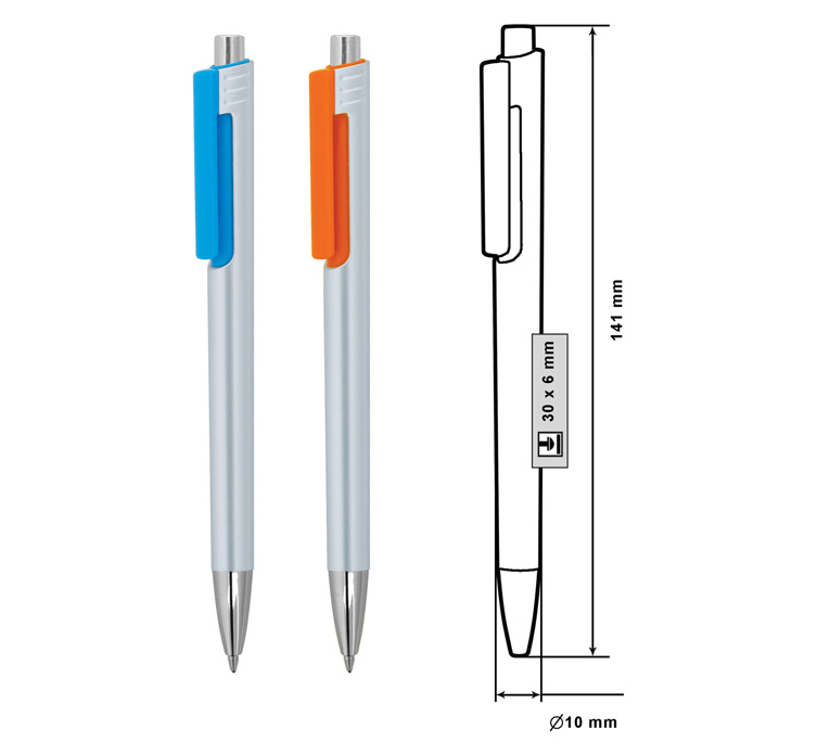 Plastic ballpoint pen, slim plastic refill, blue ink.