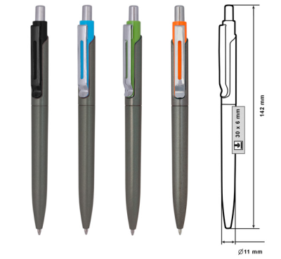 Размер на артикула: Ø11х142 mm. Печатаемо поле: 30х6 mm. Печат: тампонен, ситопечат.