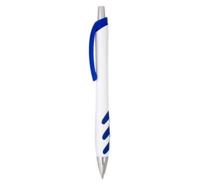Plastic ballpoint pen, slim plastic refill, blue ink.