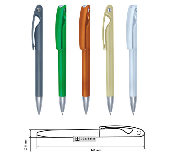 Plastic ballpoint pen, slim plastic refill, blue ink.