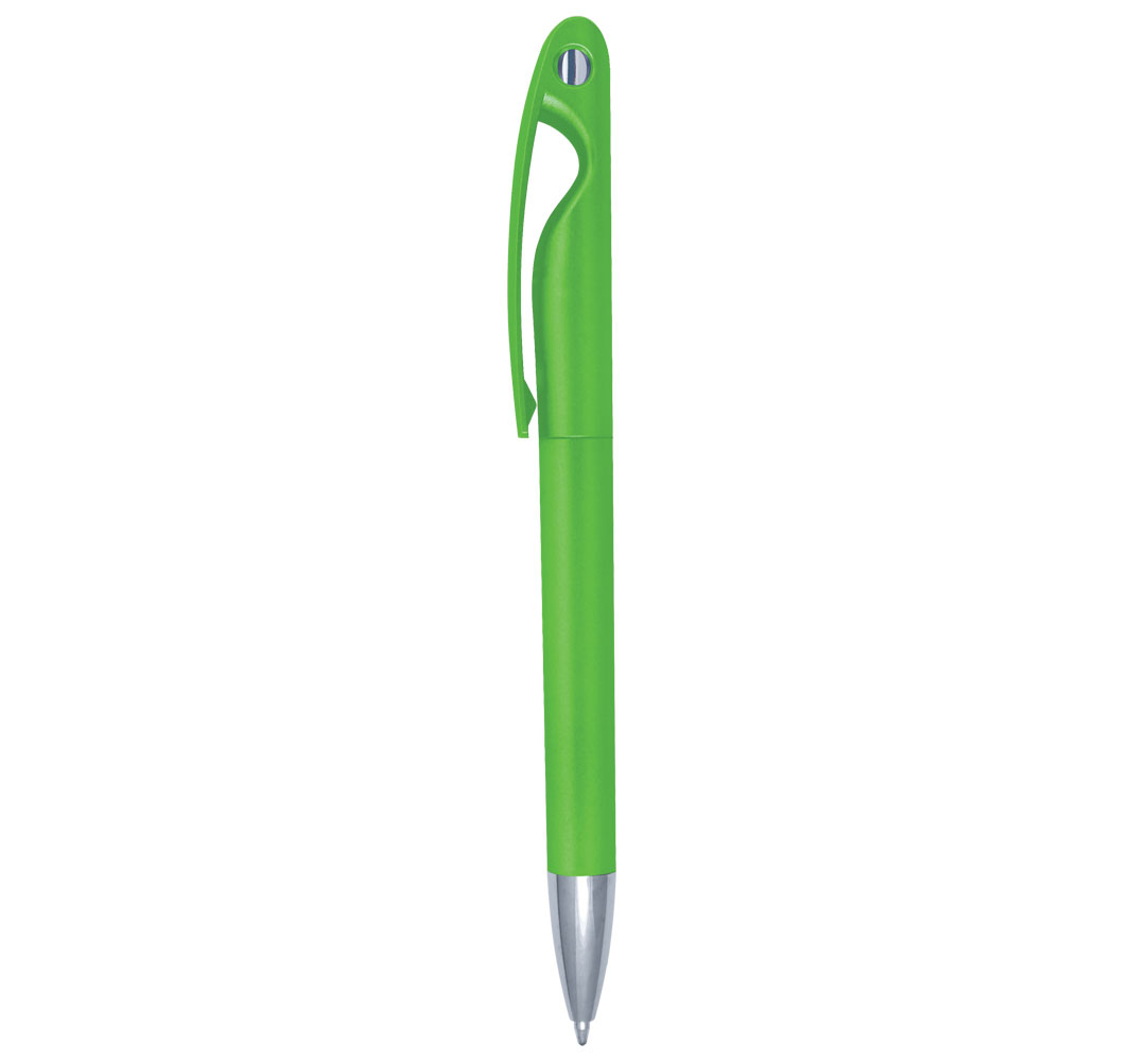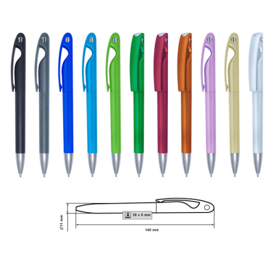 Plastic ballpoint pen, slim plastic refill, blue ink.