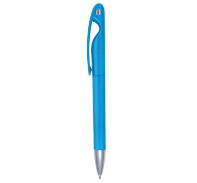 Plastic ballpoint pen, slim plastic refill, blue ink.