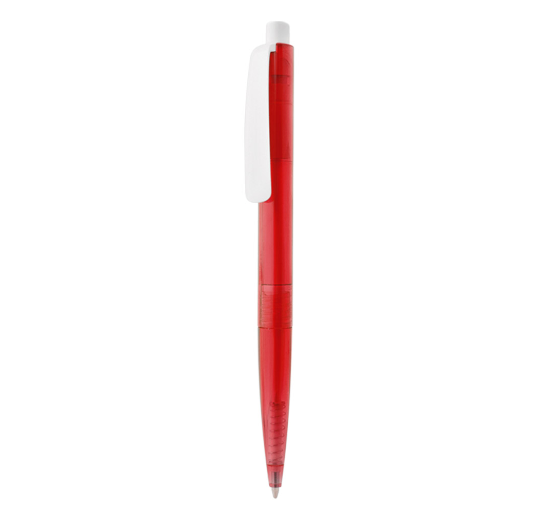 Plastic ballpoint pen, slim plastic refill, blue ink.