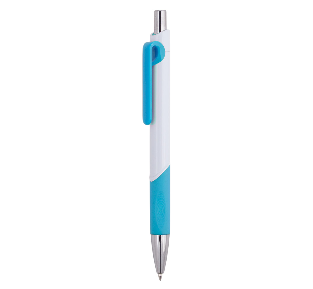 Plastic ballpoint pen, slim plastic refill , blue ink.