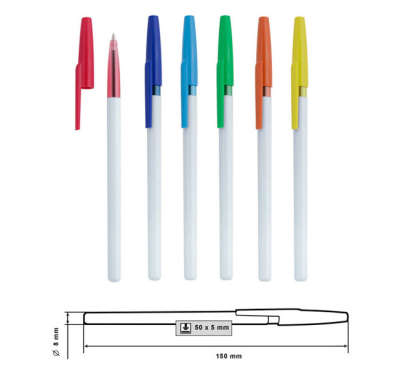 Plastic ballpoint pen, slim plastic refill , blue ink.