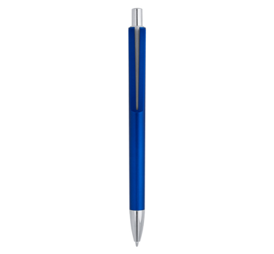 Plastic ballpoint pen, slim plastic refill, blue ink.