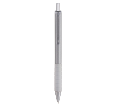 Plastic ballpoint pen, slim plastic gel refill, blue ink.