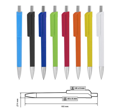 Plastic ballpoint pen, slim plastic refill, blue ink.