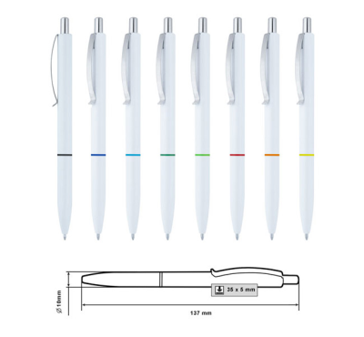 Plastic ballpoint pen, slim plastic refill, blue ink.