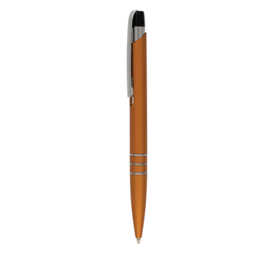 Plastic ballpoint pen, slim plastic refill, blue ink.