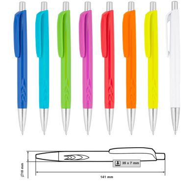 Размер на артикула: Ø10х141 mm. Печатаемо поле: 35х7 mm. Печат: тампонен, ситопечат.