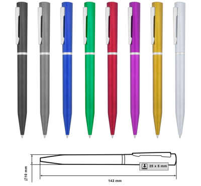 Размер на артикула: Ø10х142 mm. Печатаемо поле: 25х5 mm. Печат: тампонен, ситопечат.