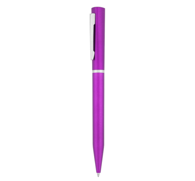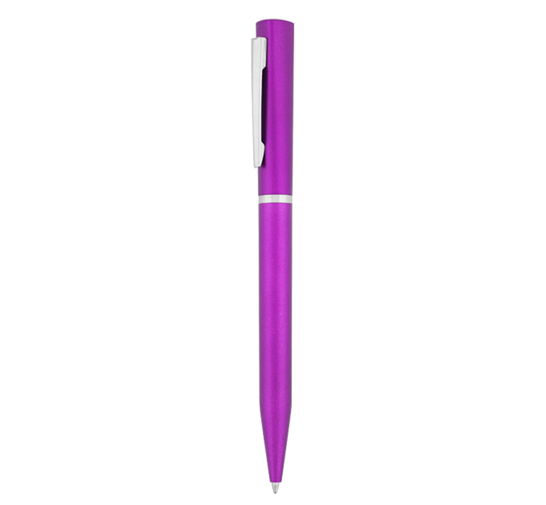 Plastic ballpoint pen, slim plastic refill, blue ink.