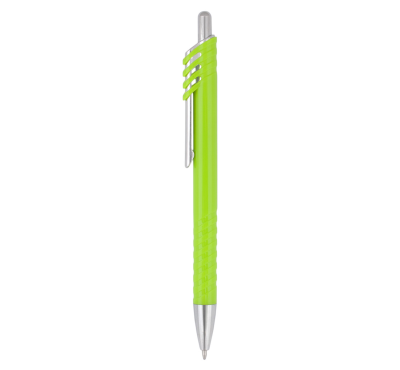 Plastic ballpoint pen, slim plastic refill, blue ink.