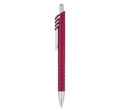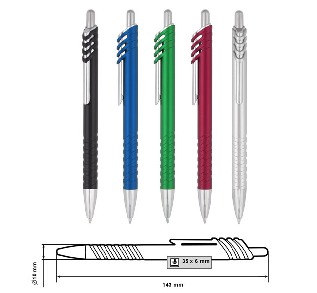 Plastic ballpoint pen, slim plastic refill, blue ink.