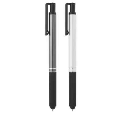 Stylus pen, slim plastic refill, blue ink.
