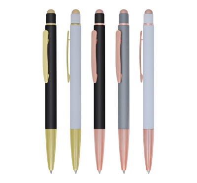 Stylus pen, slim plastic refill, blue ink.