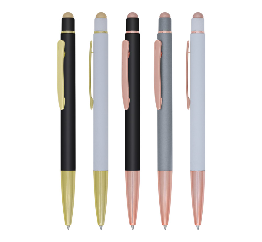 Stylus pen, slim plastic refill, blue ink.