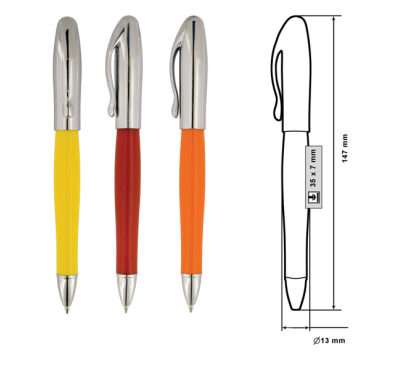 Plastic ballpoint pen, plastic Jumbo refill, blue ink.