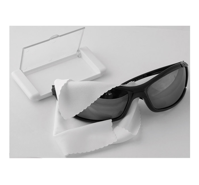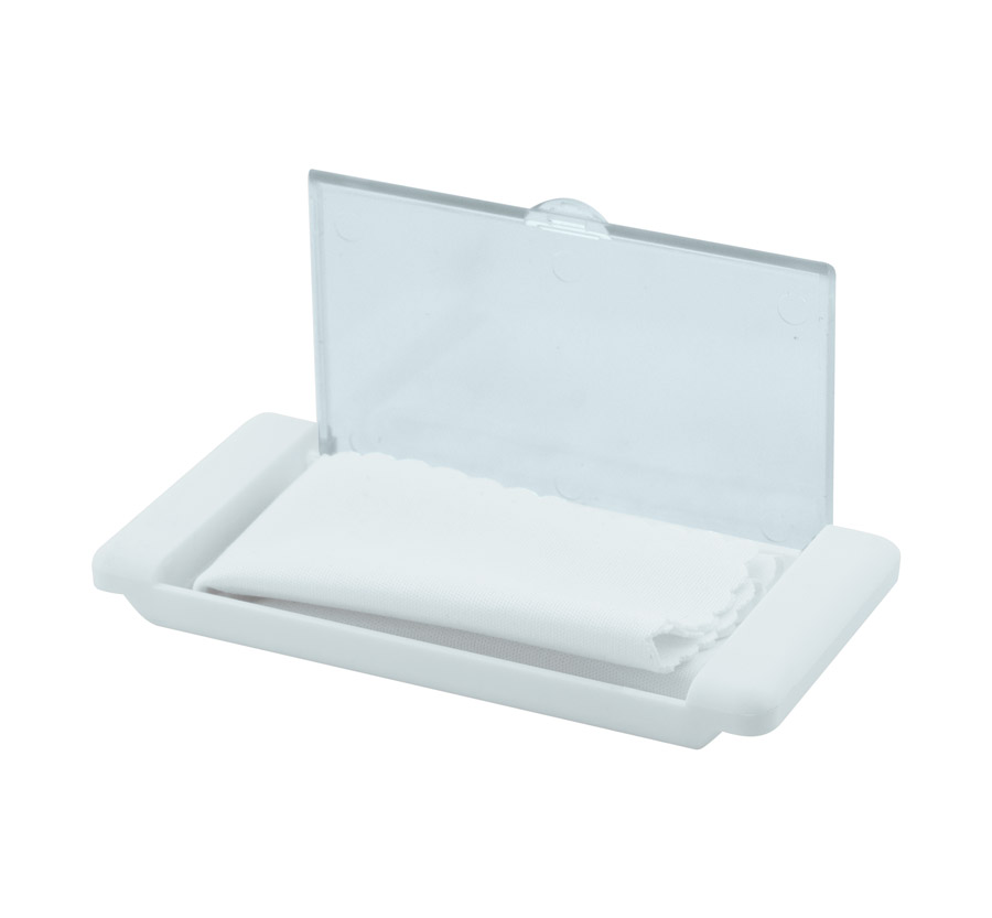 Почистваща кърпичка за очила в кутийка.