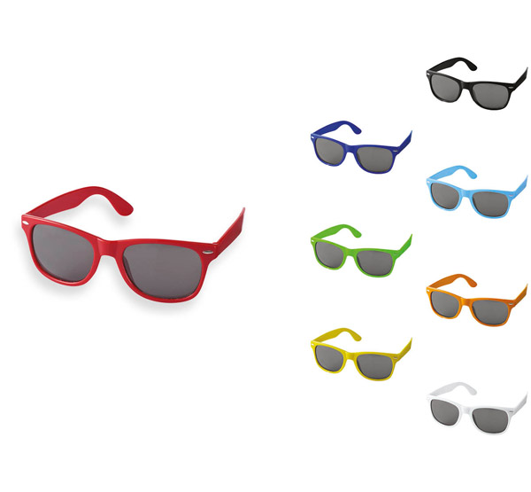Plastic sunglasses with colourful frame and UV400 protection lenses.