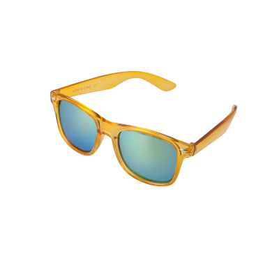 Reflective sunglasses with colourful plastic frame and UV400 protection lens.