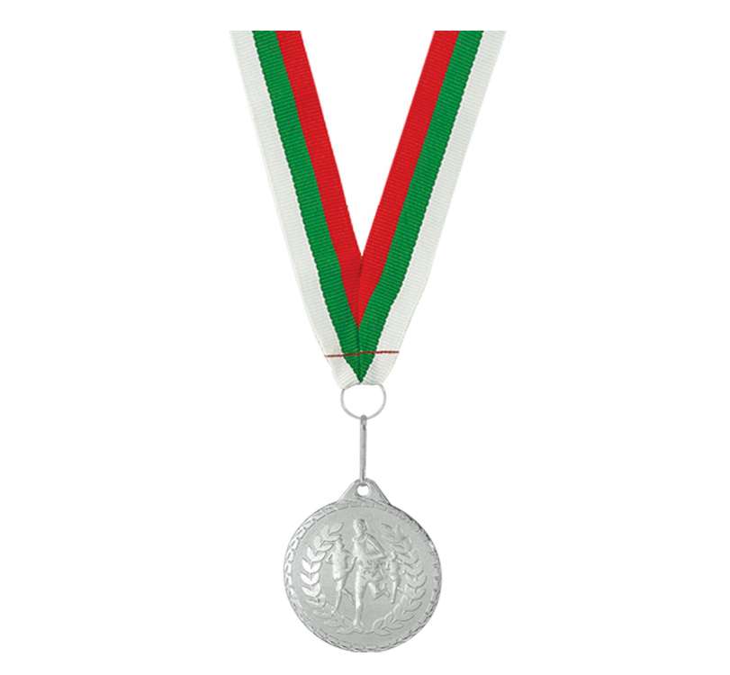 Award medal with tricolor-embroidered ribbon and a metal hook.