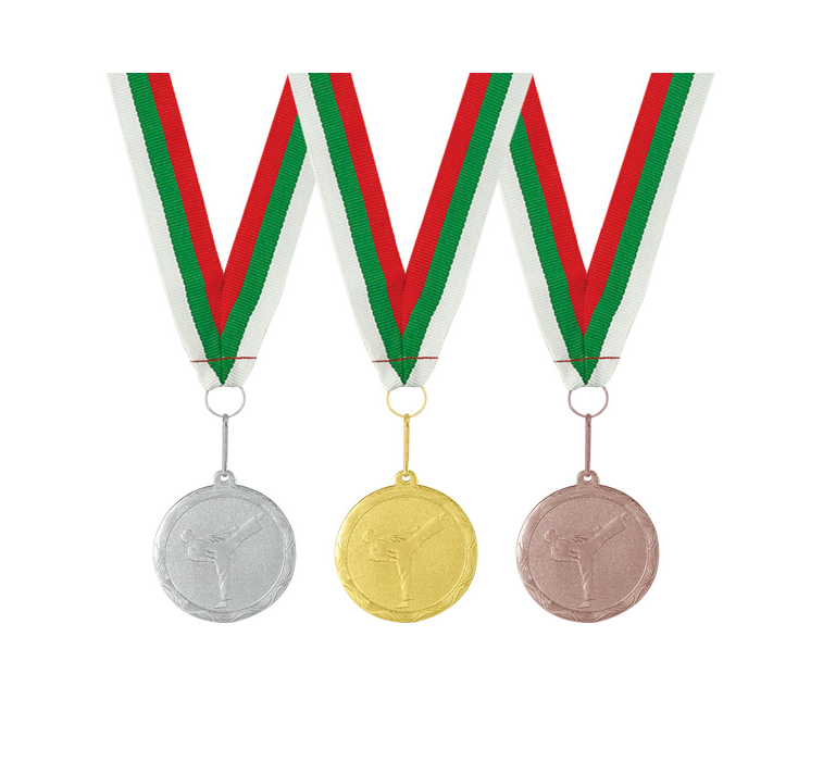 Award medal with tricolor-embroidered ribbon and a metal hook.