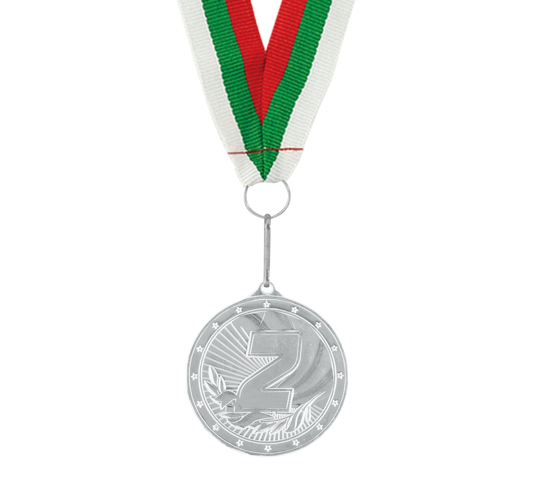Award medal with tricolor-embroidered ribbon and a metal hook.