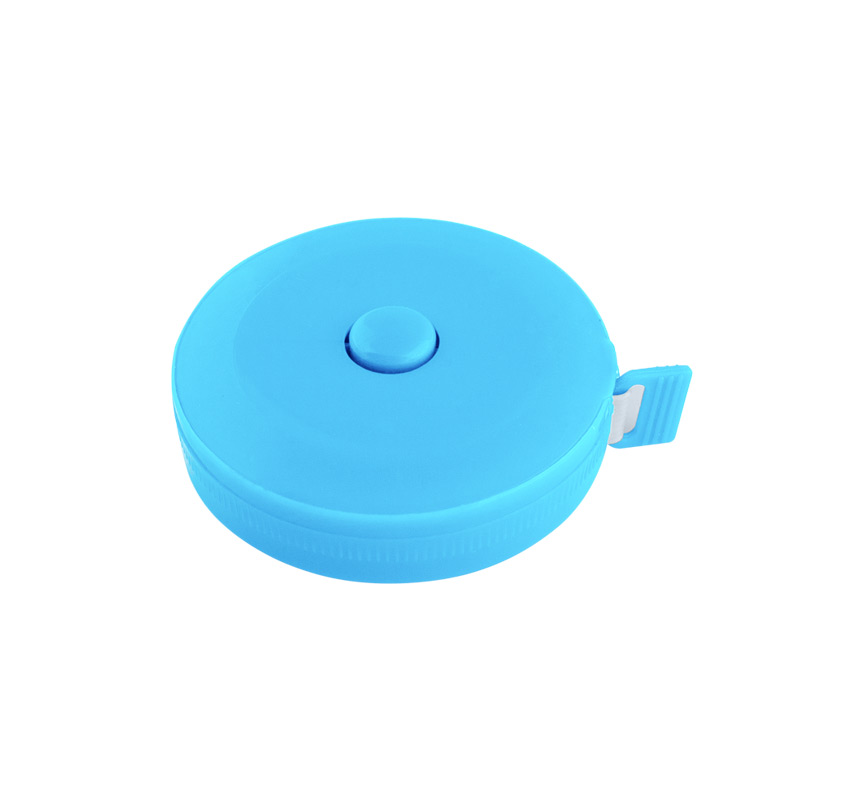 1.5 meter round measuring tape showing centimeters on one side and inches on the other.