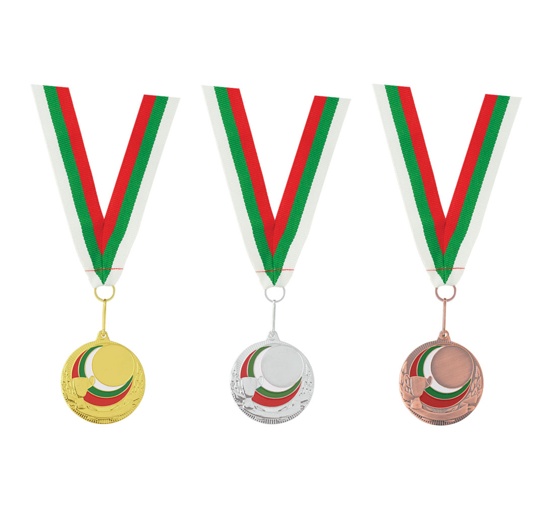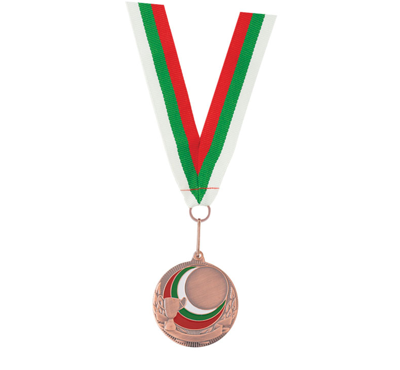 Award medal with tricolor-embroidered ribbon and a metal hook.