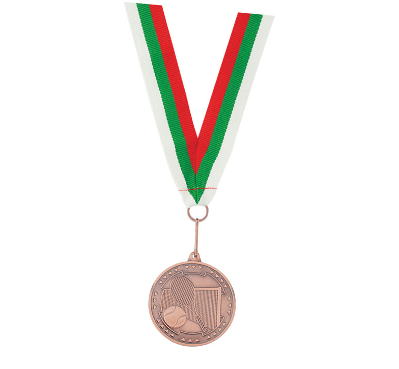 Award medal with tricolor-embroidered ribbon and a metal hook.