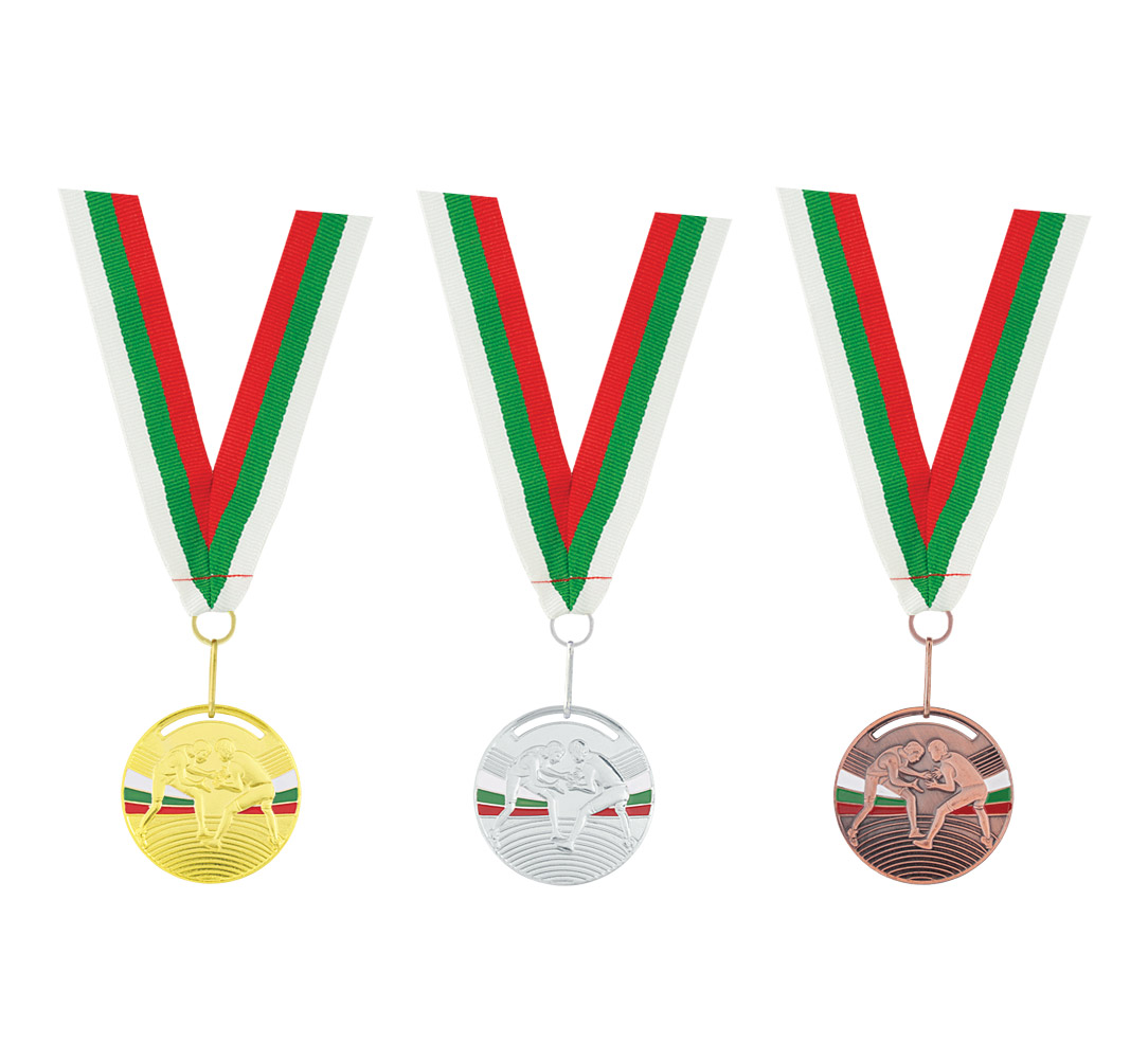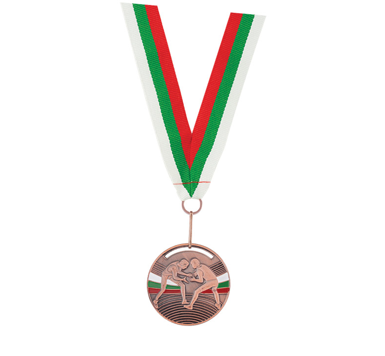 Award medal with tricolor-embroidered ribbon and a metal hook.