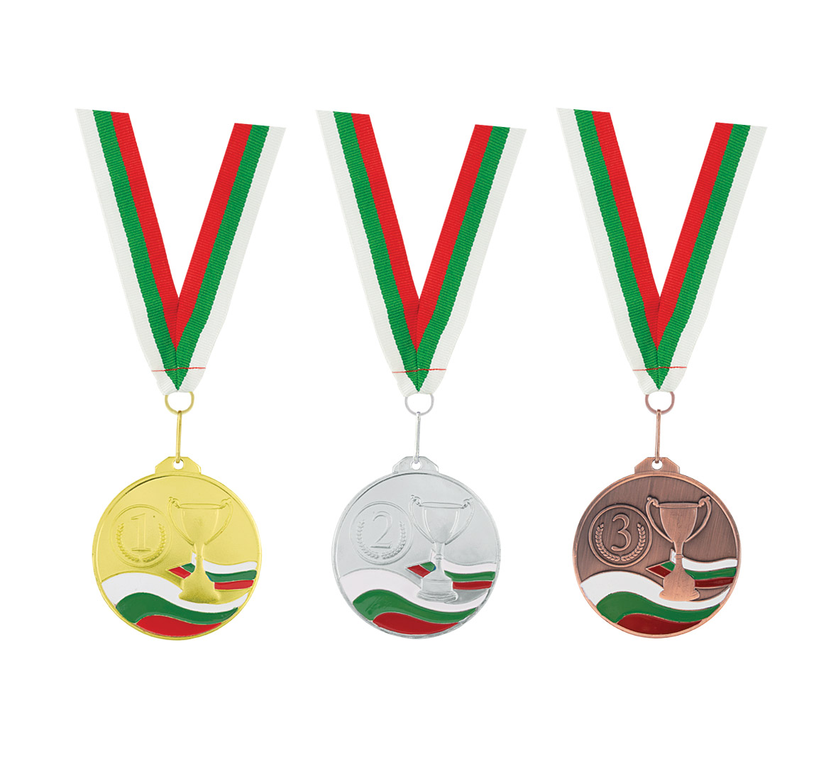 Award medal with tricolor-embroidered ribbon and a metal hook.