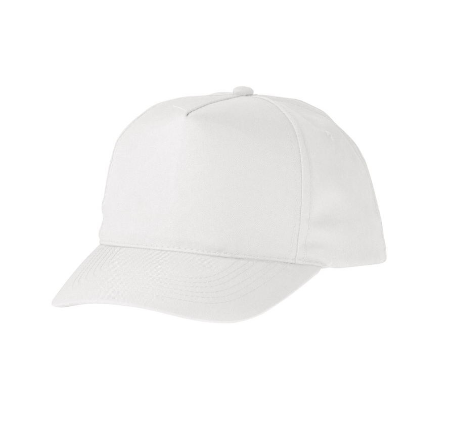 5-panel polyester cap, 4 embroidered eyelets for ventilation, velcro back closure.