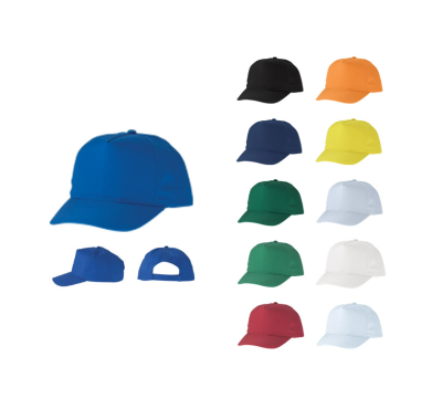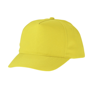 5-panel polyester cap, 4 embroidered eyelets for ventilation, velcro back closure.